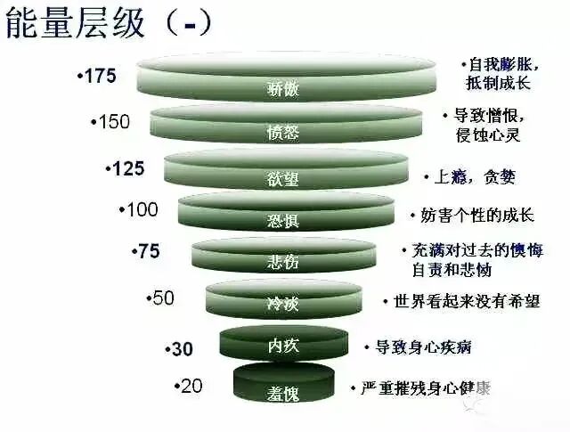 心理学家David R.Hawkins分析了各类情感的能量等级,从最负面、伤身的情感,到最正面、滋润的情感,所有情感里面,排名最低的不是愤怒、悲伤、恐惧,你认为应该是什么?排名最高的不是骄傲、勇气、真爱,你觉得会是什么?